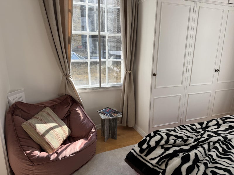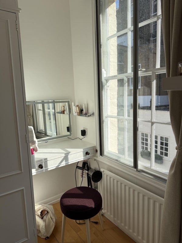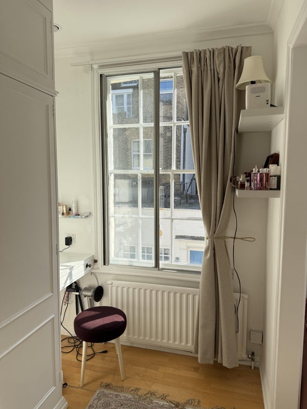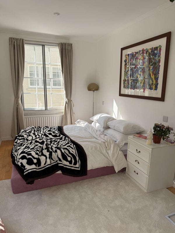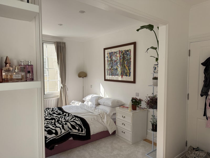 I am currently living in a 4 bedrooms (one of them is an office and the other one as a tv room) mew house in South Kensington with my best friend and her boyfriend. I am leaving at the end of the month and need someone to replace me in my fully furnished bedroom. It such a beautiful bedroom with 3 windows and amazing light with such beautiful furniture but unfortunately I need to leave for business opportunities. My best friend is 27 and share her bedroom with her boyfriend. They both work and they also have a dog.