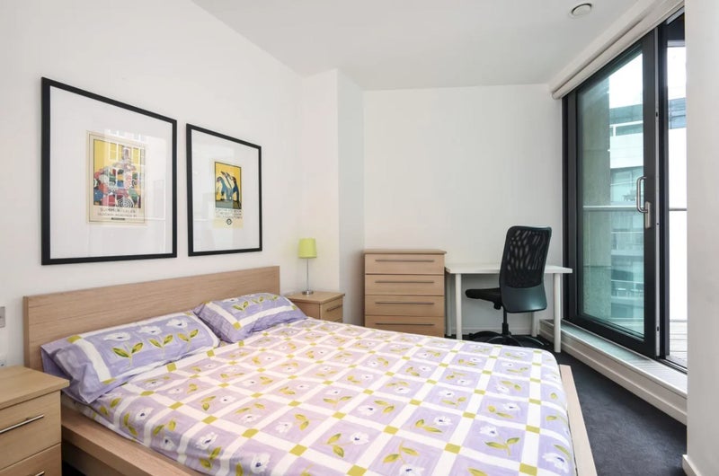 You will have access to 2 balconies (bedroom and living room), communal living room, dining area and kitchen, plus high specification bathroom and walk-in laundry space. It's a really spacious flat so plenty of room to chill out together or enjoy your own space.