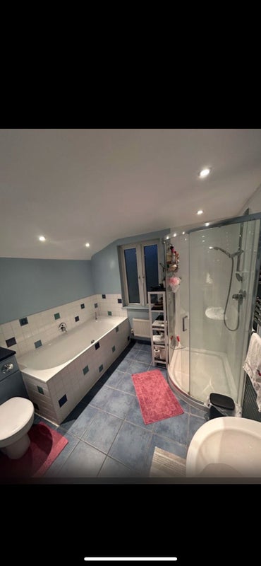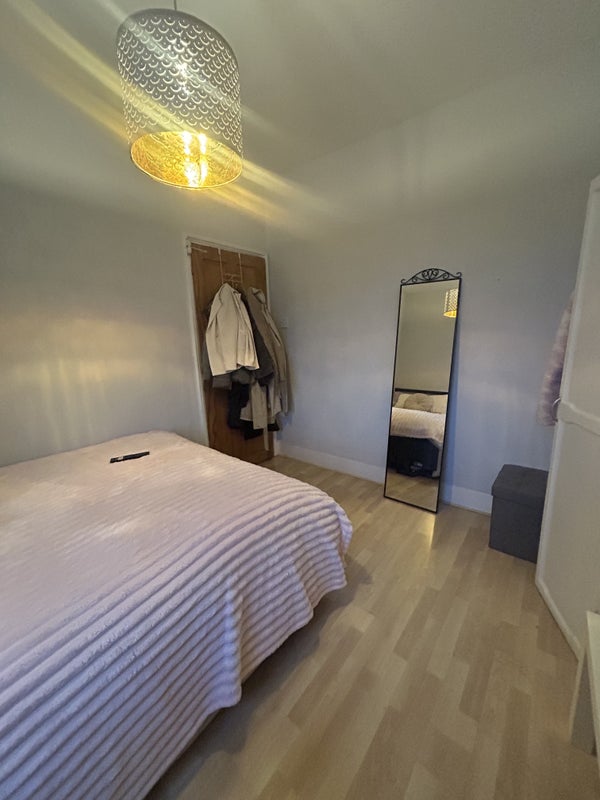 Big house, 1 bathroom accessible to this room and an additional toilet downstairs. Big kitchen and living room. Garden with furniture that we love to use in the summer. Room comes with the bed and built in wardrobe, the rest of the furniture is not included.