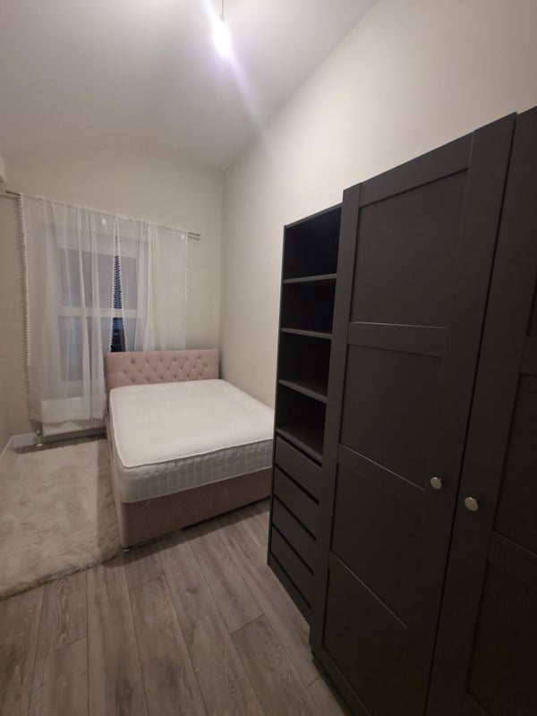 The room comes with a brand-new bed, wardrobe, and plenty of space to make it your own. There’s also a spacious shared living room, plus additional wardrobes in the living area for extra storage.