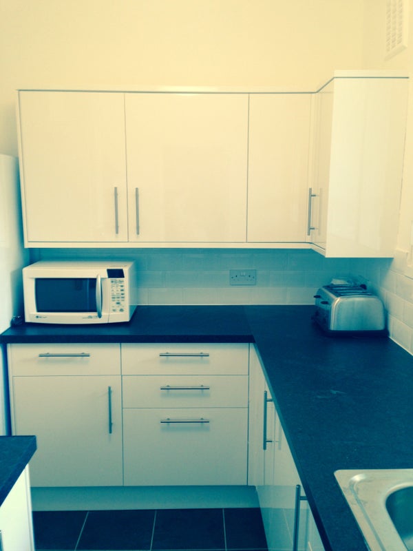 The flat is really bright and airy and is situated in its own beautiful grounds. It has 2 bathrooms and fully-equipped kitchen. The room is furnished with a double-bed, wardrobe, chest-of-drawers, mirror and shelves.