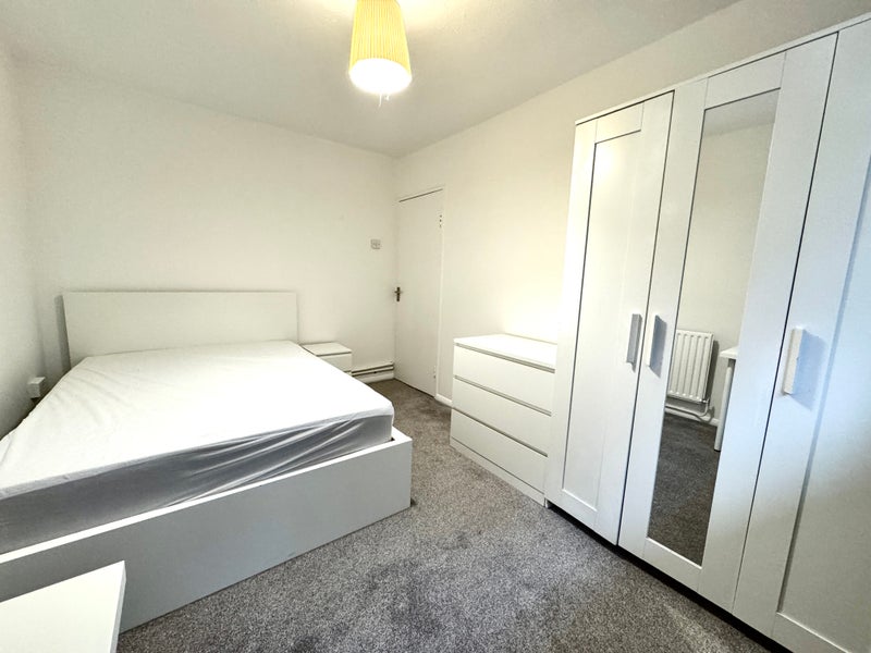 The room is fully furnished with a double bed, wardrobe, and chest of drawers – ideal for someone who wants a quiet and well-connected home.