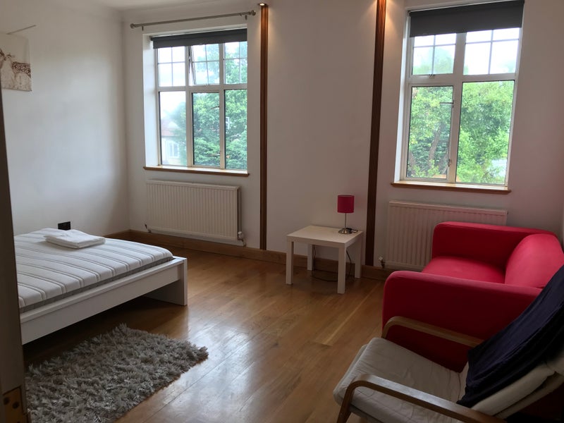 This available room is Room 2 on the floor plan , It is an extra large fully furnished double room about 240 square feet , it is bright with 2 large windows and very spacious, it is bigger than standard double-room, it consists of a walk-in wardrobe, a king size wooden double bed, mattress, a double couch, coffee table ,writting desk and a chest of drawers.
