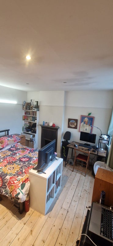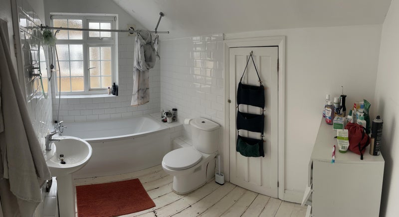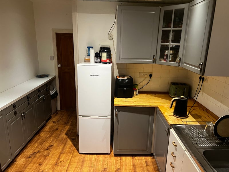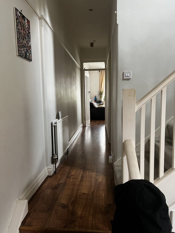 Come join our spacious two storey house located halfway between Southgate and Palmers Green. We have a good sized shared kitchen with large gas oven, plenty of storage and a lean-to for bike storage plus extra freezer space. The house is lucky enough to have a large, spacious living room with high ceilings, an upright piano and two comfy sofas. Upstairs is a shared bathroom with bath, shower and a utility closet that contains a washer & tumble dryer