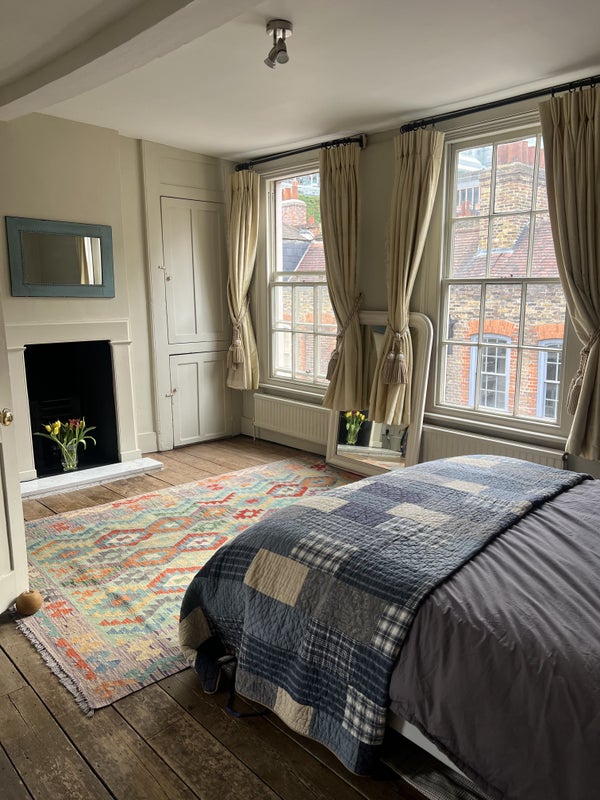 Bright, sunlit top floor room in a charming townhouse on a quiet street in Spitalfields.
