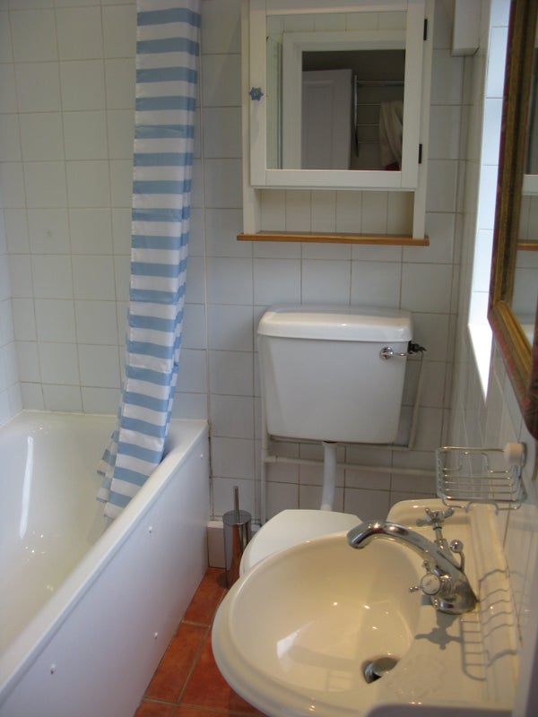 The large front room could be a lounge or bedroom. The main bedroom overlooks the garden, and there is a lounge / dining-room adjacent to the small kitchen, which in turn leads through to the bathroom, where there is a bath tub and thermostatic shower, plus toilet and wash basin. A door from the kitchen leads into the private south facing garden which has a small storage space for garden tools, chairs etc.