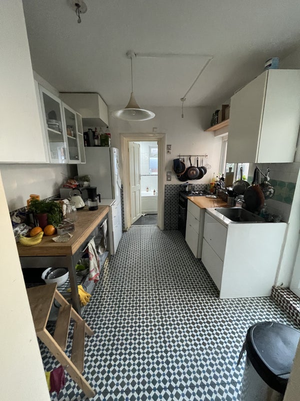 About the house: You’ll be sharing the house with 3 others between 28-31yo (2M 1F). Downstairs, past the bedroom at the front of the house, there is an entrance hallway with shoe racks and coat hanging, which leads through into the living room and kitchen. The kitchen is open plan with lots of open storage areas, and there’s direct access to the spacious covered patio and garden (plus shed!) from there, with space for bike storage. The downstairs bathroom is also accessed through the kitchen. Upstairs, on the middle floor - just past this room - there is a utility room with washing machine and a second fridge/freezer, plus space to hang clothes. There are also separate toilet and shower rooms on the middle floor.