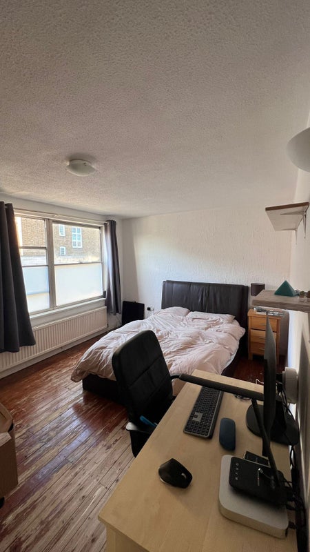 Double Room available from end of April in a four bedroom house, with a bathroom, toilet, big common area (kitchen, living room, and dining room), garden, parking space and huge storage space. Very well connected, 2mins walk from Stepney Green station (District and Hammersmith tube lines) and 10mins walk from Bethnal Green station (Central line).