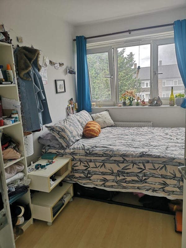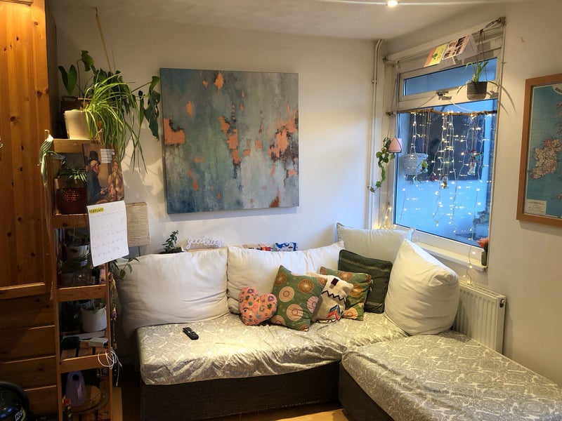 The room: Comes with a double bed (lots of under bed storage), bedside table, book shelf and single wardrobe, but we also have available storage outside the room). £650month +bills (approx. £100/month). Available from 10th March.