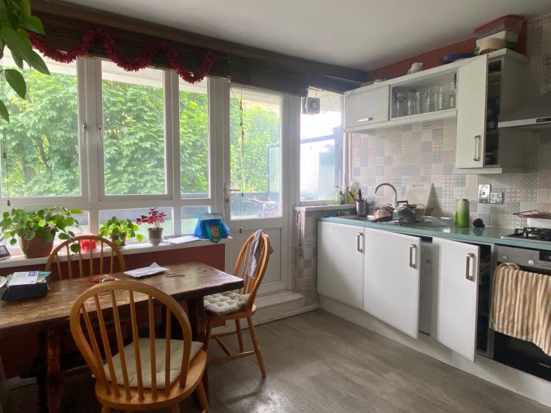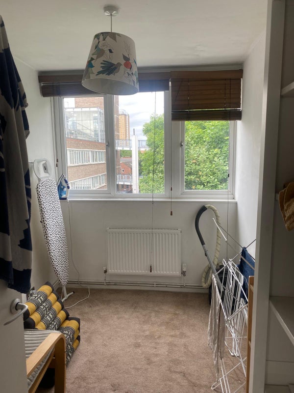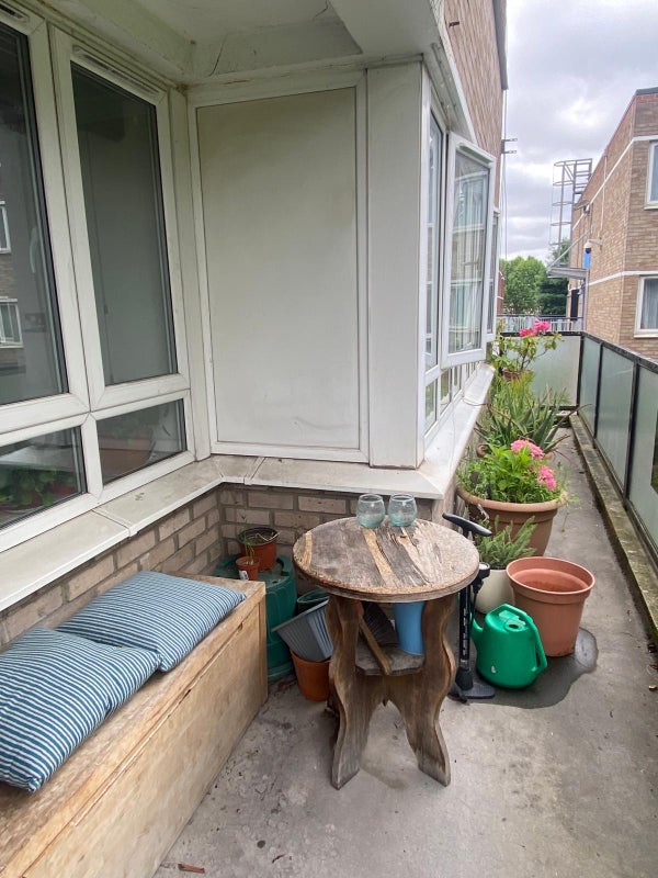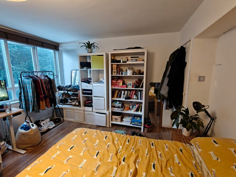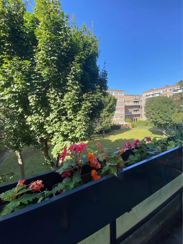 The flat is split over two levels (we are on the second floor and there’s no lift fyi) with two balconies - fabulous in the summer! The room available is a large double room and comes furnished (bed/sofa/bedside table/shelves/desk) and the flat has loads of storage in general. The room looks out on the beautiful greenery of our estate - it’s super quiet and all our neighbours are really friendly.