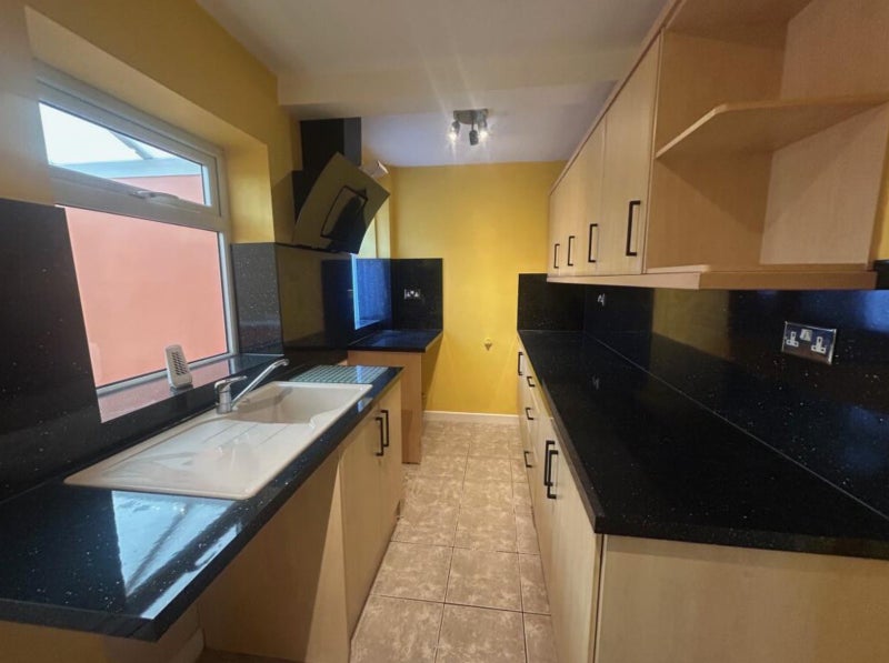 Fully equipped kitchen with microwave, kettle, toaster, washing machine, fridge, and more