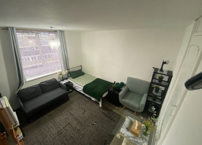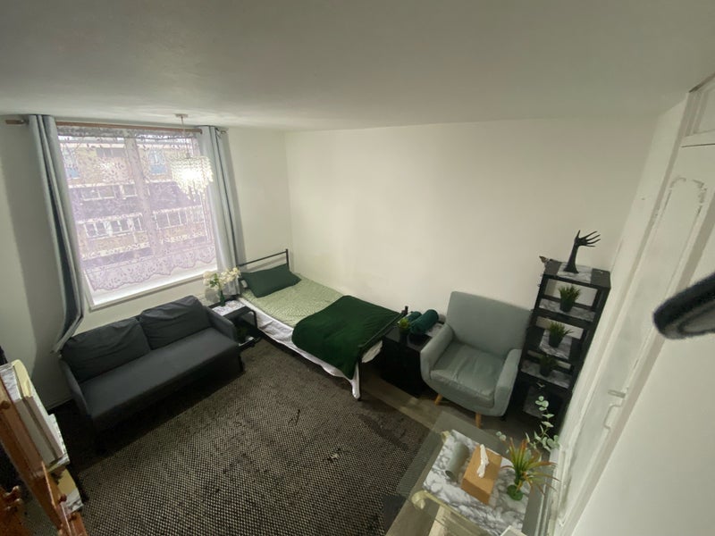 This is a two-bedroom duplex flat with three rooms in total. Normally, three people live here, sharing the kitchen, toilet, and bathroom. Currently, the large upstairs bedroom is available for rent.