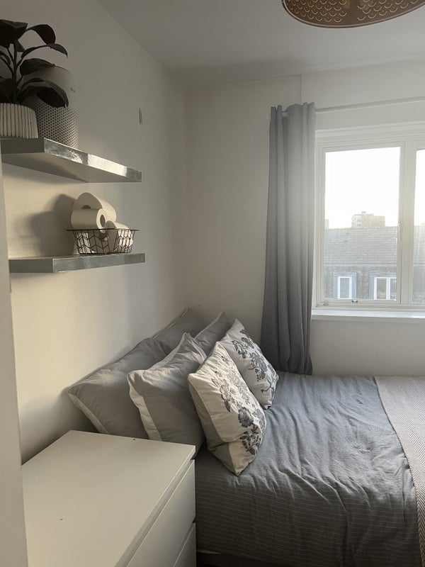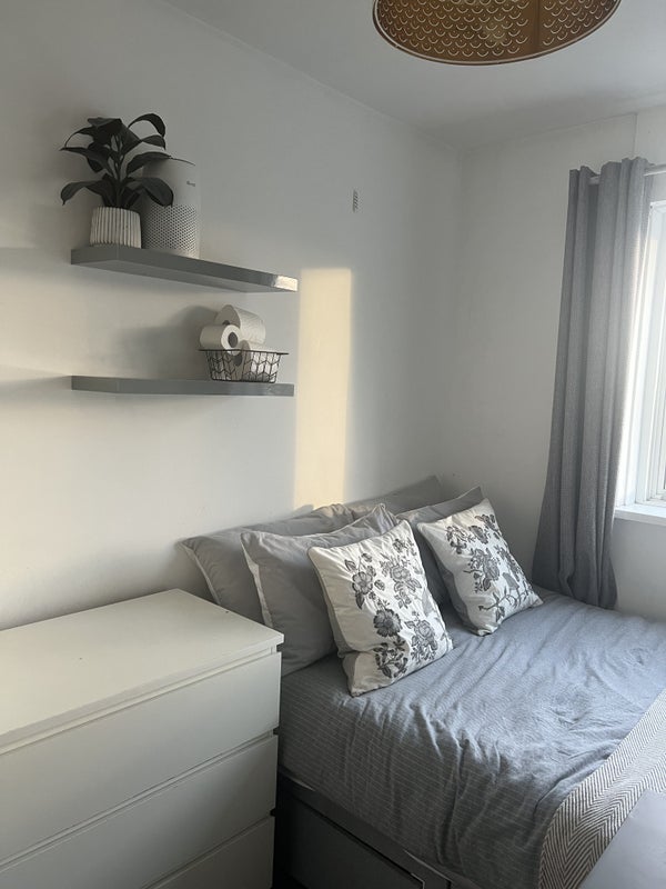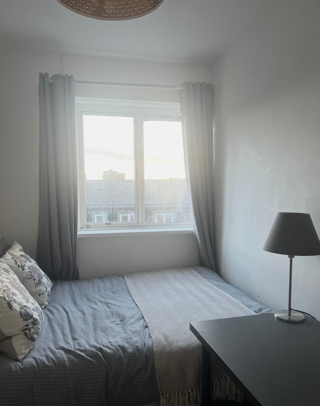 Bright, spacious and fully furnished small double-bed bedroom is available in a spacious 4-bed flat for single occupancy.