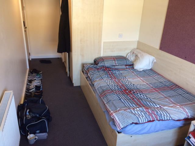 This accommodation is extremely secure as it requires a card to swipe into the building, flat and bedroom. The bedroom itself comes with an ensuite toilet and shower cubicle, as well as a 3/4 bed, a cupboard and desk! The shared kitchen contains a seating area to hang out with flatmates and is cleaned weekly. On the bottom floor there is a laundry facility available as well as a common room which contains a snooker hall and television.