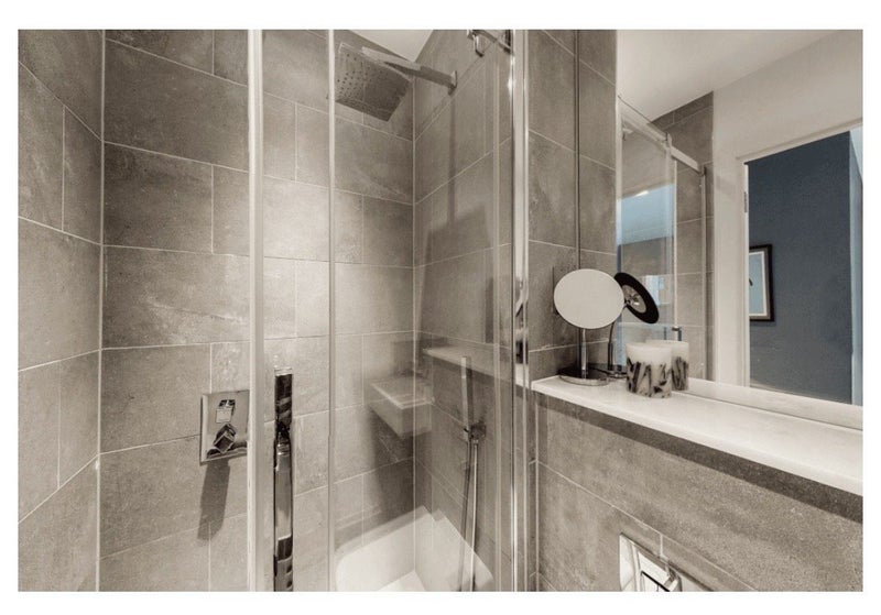 The room is a huge gorgeous double bedroom with an en-suite with shower. It also has a walk-in wardrobe with lots of storage. The flat overall is very light, has a huge terrace and modern furnishings. There is a bike storage in the building as well.