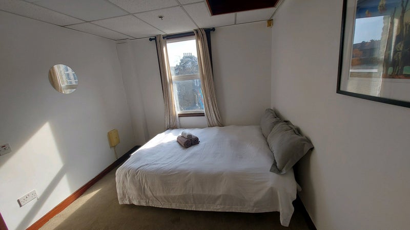 The spacious room consists of a double bed, wardrobeb and study table. There is shared kitchen and living room. There are two toilets and two showers.