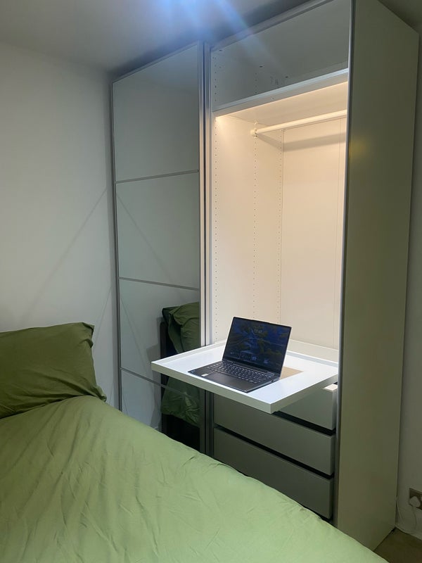 Cute petite double room in 3 bed flat on residential road in Stockwell, zone 2. Under bed and huge wardrobe for storage. Philips hue lighting throughout flat.