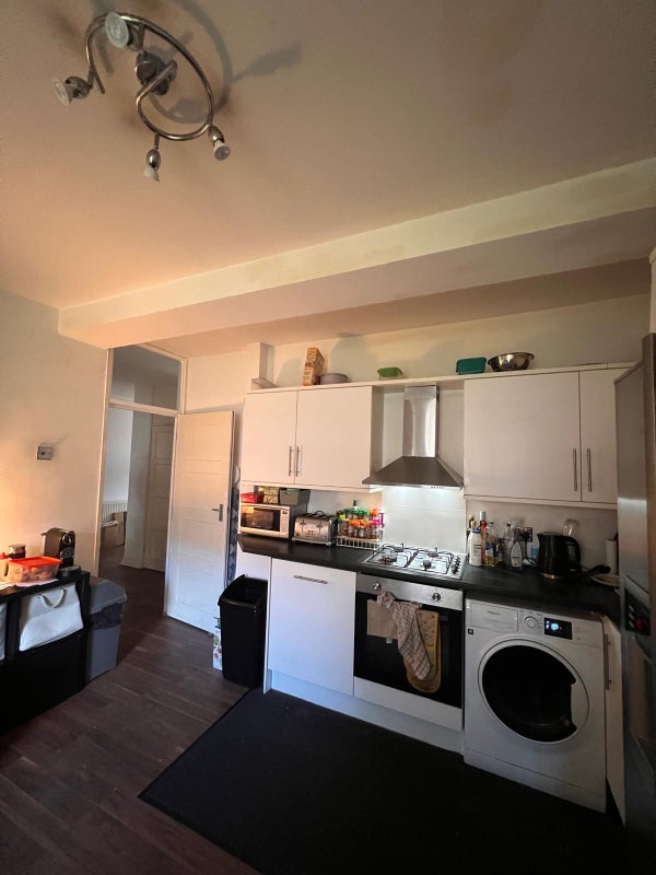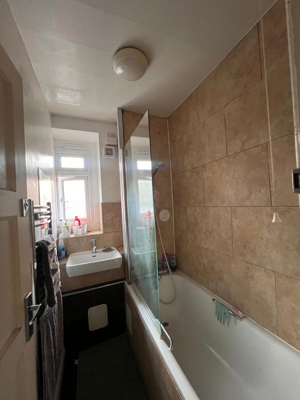 4 bedroom, 1 bathroom (with a separate toilet) ground floor flat.