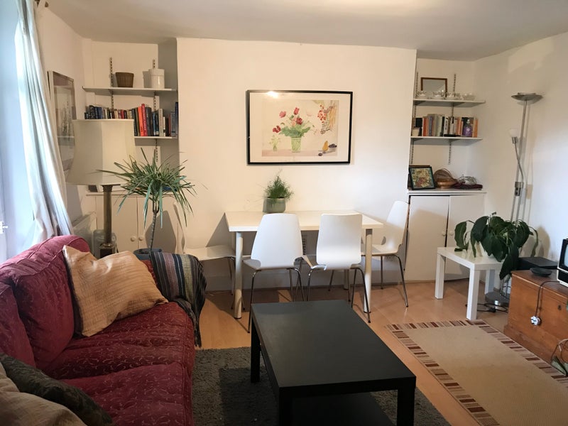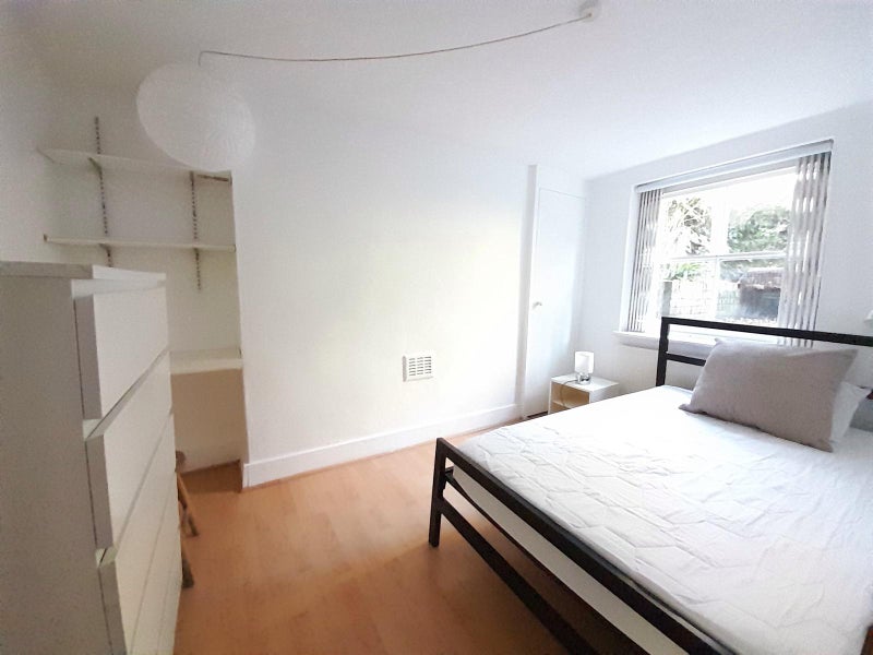 This flat is fully furnished and with ample storage. It includes a large living room/ kitchen, bathroom and two double bedrooms, one of which is smaller than the other as seen in the pictures. While the flat is on ground level, the large windows give it an airy feeling and allow you to look into my lovely back garden, which you are more than welcome to use.