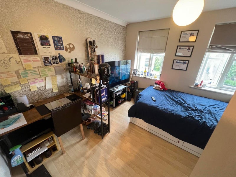 Flat: 2 double bedroom, 1 ensuite (mine) and a double bedroom with own bathroom (with bath, in front of the room). It has a massive living room and a separate kitchen. There is a lot of storage around the house. The house/room comes with furniture.