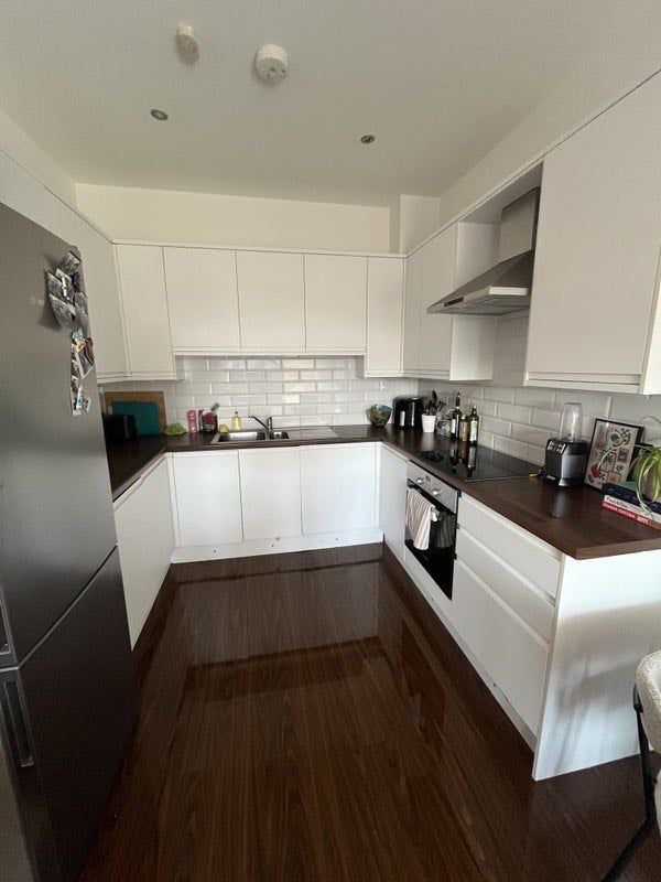 The flat has a clean, modern kitchen, and the whole place feels calm, tidy, and easy to live in.