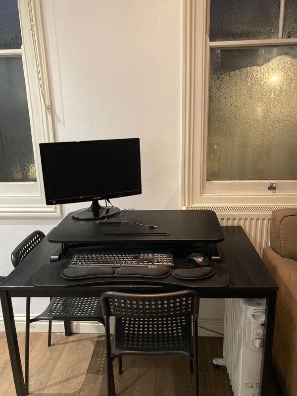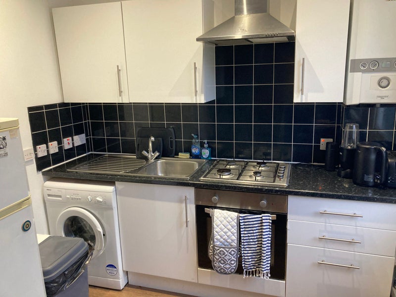 The flat has a great open plan kitchen and lounge area with workspace. The kitchen uses gas and everything works well. There is a neighbour upstairs who is very nice and helpful. Any questions let me know.