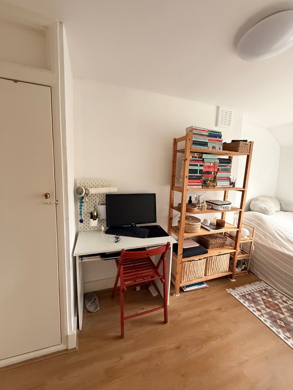 Cozy double room with a big built-in closet, window is overlooking a garden. Comes furnished or unfurnished - all the items in the photos are mine and I’m open to leaving or getting rid of any if you’ve got your own.