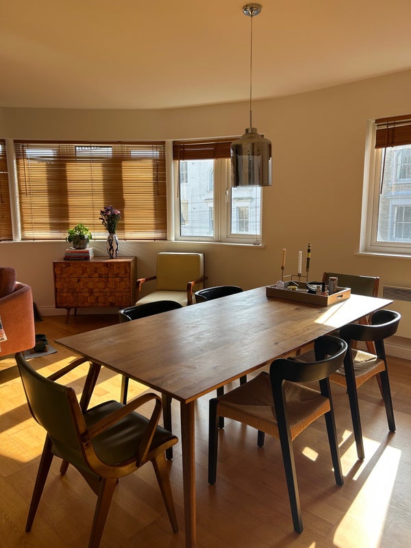 We are renting out a beautiful double room with plenty of storage and built in desk. It also has its own large bathroom, right across the hall. The flat is very spacious, bright and decorated to very high standards as this used to our family home for five years. There is a living room that can sit 8 people and a big dining table that can also be used as co-working space. The kitchen has also been recently renovated and is fully equipped, even for the most skill-full home cooking and baking. There are two bathrooms in the flat. We are 7’ minutes away from Clissold Park and 10’ from Dalston. There is also one more room next to it that will be used occasionally by me or my partner when we are in London (approximately every two months for a week) and one more room at the end of the hallway where one young female professional will be staying. Please note that there won’t a bed in the room and a tv in the living room. Everything else stays as it appears on the photos.