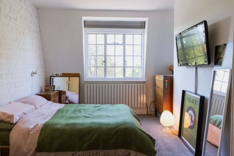 The flat is on the top floor with a shared bathroom. There are large windows on all sides, so it’s super bright with lots of natural light!