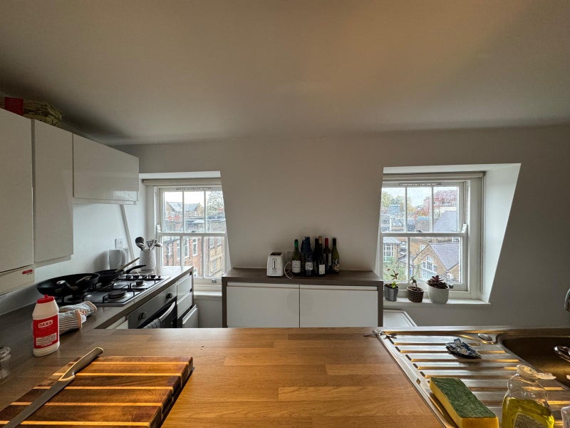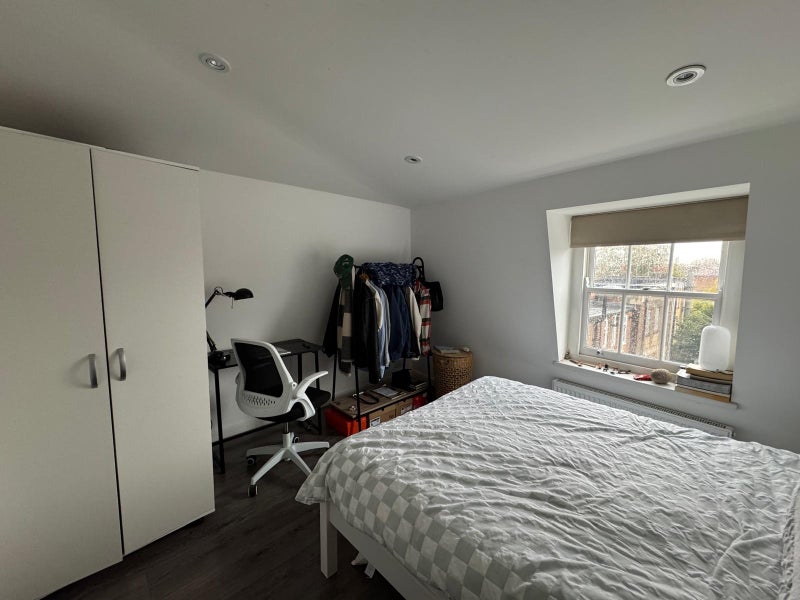 Posted this ad a while ago for a short term let but now looking for a long term tenant to take over my room in an incredible flat just off of Stoke Newington's lovely Church St. It’s a minute walk away from super nice bakeries (Spence), pubs (Auld shillelagh), and great restaurants (Rasa, Escocesa, Calong). The flat itself is a 2 bedroom penthouse with a small wraparound terrace that has 360 views of the city and allows for great daylighting!