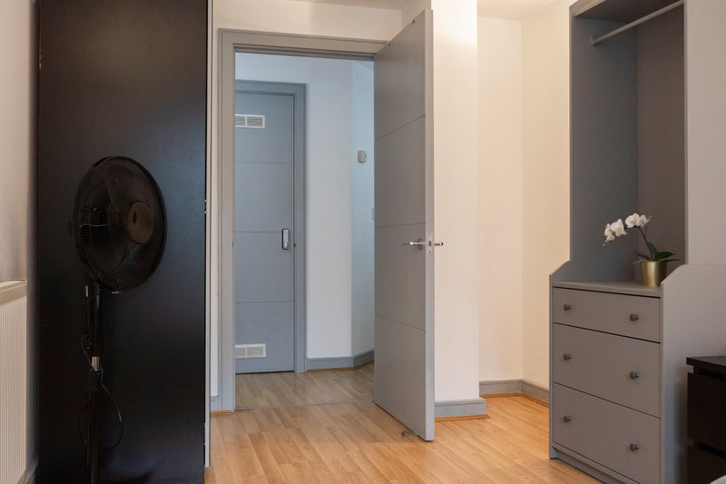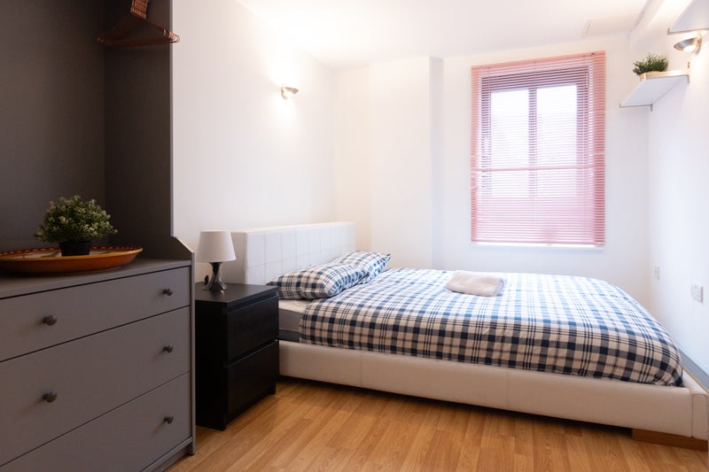 Bedroom: A large, bright room featuring a comfortable double bed and ample space for storage.