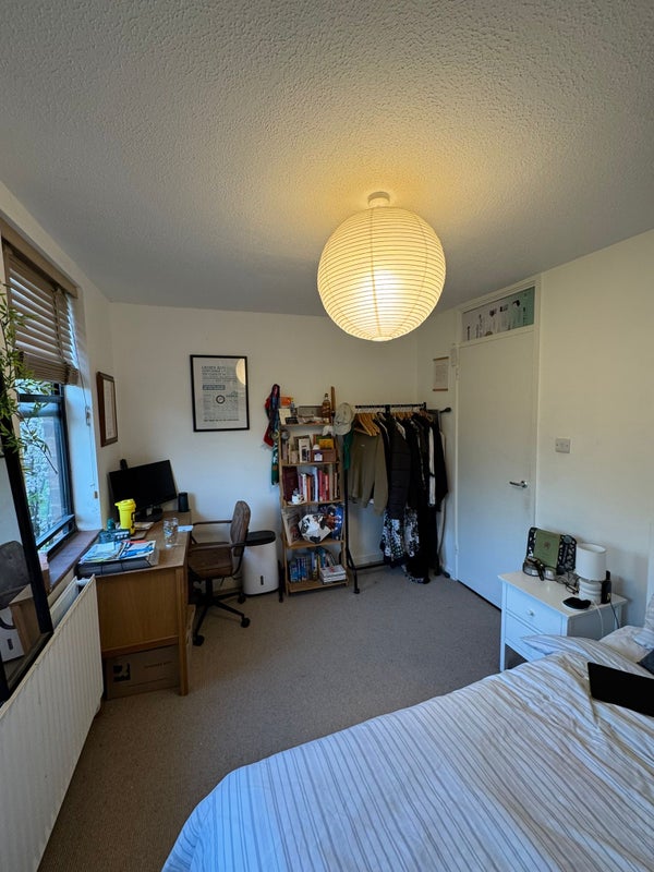 The room is quiet and has 2 windows overlooking the garden and Stoke Newington Common so it's lovely and green. There is a large built-in double wardrobe in the hallway directly outside the room for ample storage space. The room comes unfurnished but there is plenty of room for a double/kingsized bed, desk and chair, chest of drawers, clothes