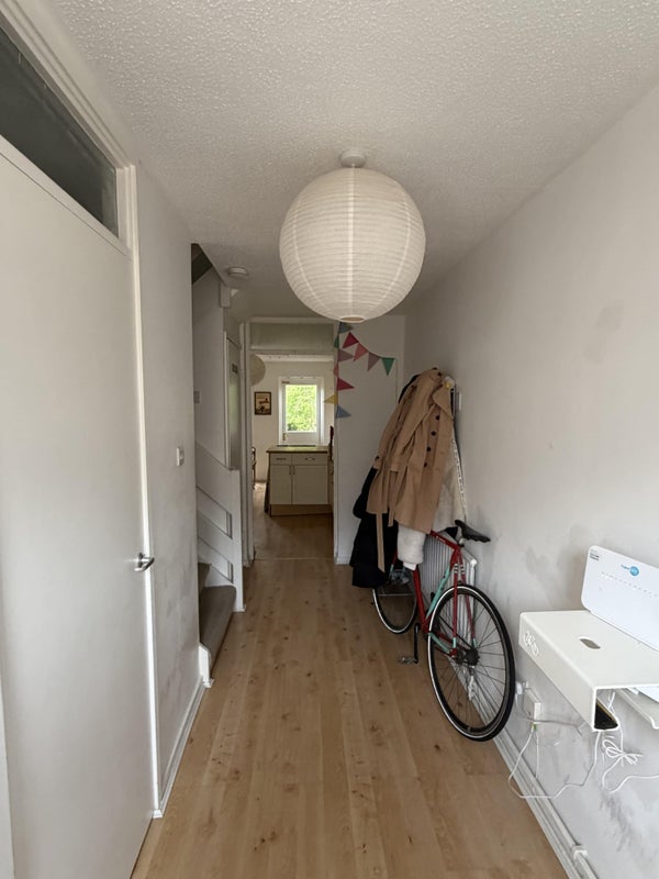 The house has 3 floors; on the ground floor, a large hallway with space for bikes, shoes and coats, a storage cupboard, washing machine