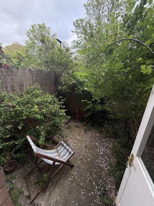and tumble dryer, bathroom and the good sized kitchen with dining table, separate fridge and freezer and a dishwasher, with a small patio garden that backs onto Stoke Newington Common.