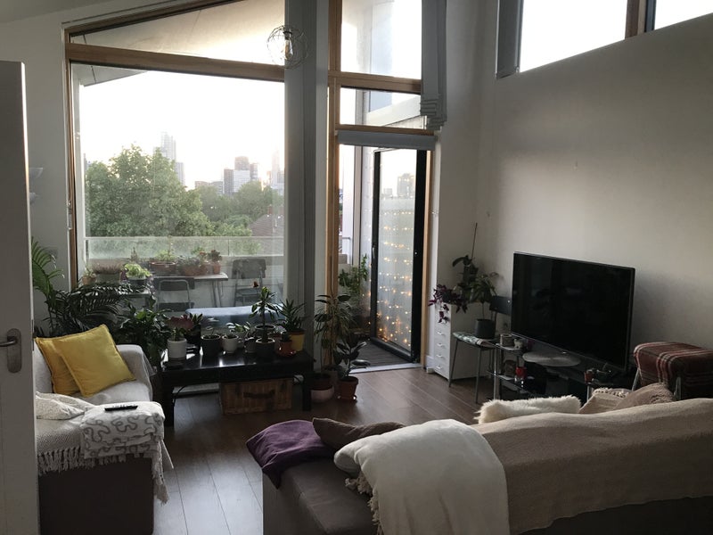 A good sized double bedroom with its own bathroom in a 2-bed flat is available from late July (dates somewhat flexible). The room comes furnished with the pictured wardrobe, chest of drawers and double bed. The flat is modern and nicely decorated with high ceilings and tons of natural light. There is a balcony which can be accessed directly both from the lounge and from your room.