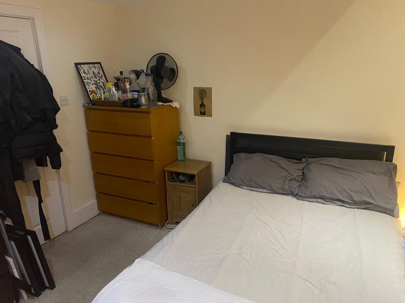 Double bedroom in a large 3 storey terraced house. The house is fully furnished and includes a large kitchen including a washing machine and dishwasher, dining/living room, 1.5 bathrooms, and a lovely newly renovated garden. There is also superfast broadband and residential parking available.
