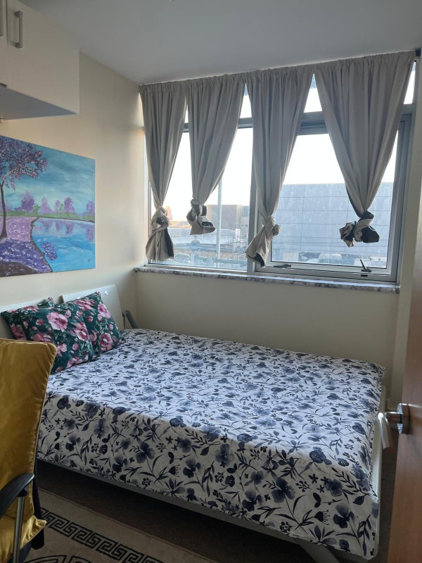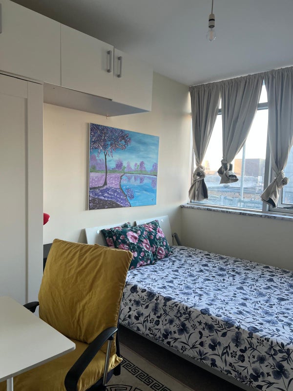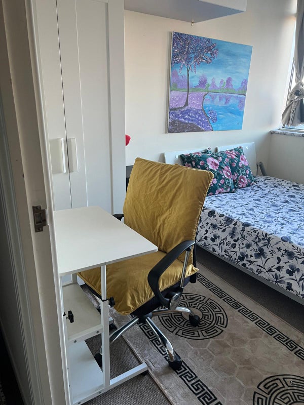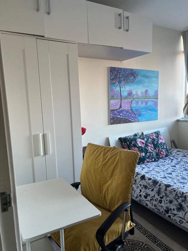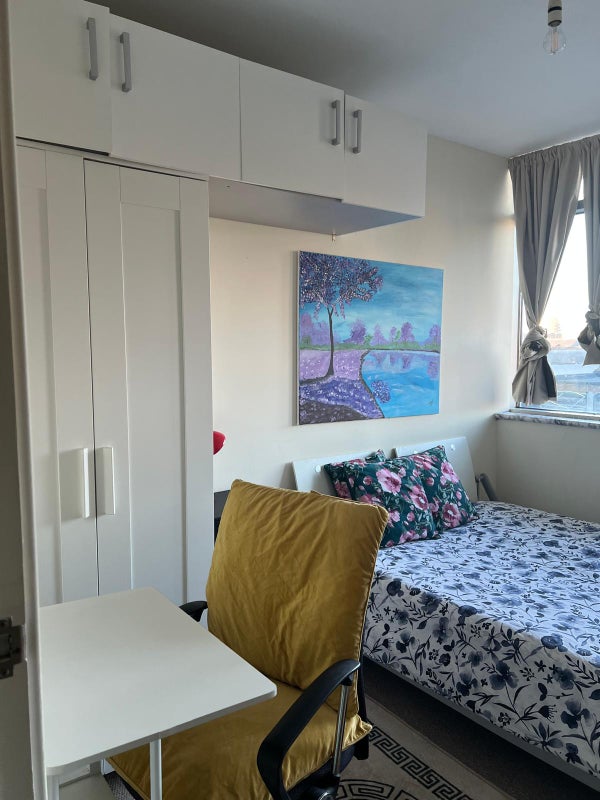 A comfy double bedroom is available for a single person in a block of flats that is conveniently close to Stratford station. The block is less than 3 minutes' walk from the station. Students and professionals are welcome.