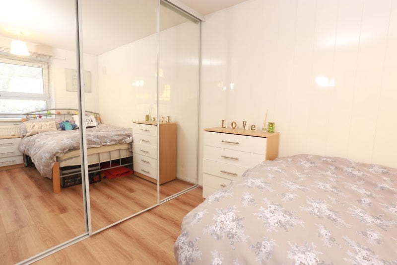 Generously sized and fully furnished, this room includes a double bed, triple built-in wardrobe, chest of drawers, and a dedicated desk with chair – ideal for working from home or relaxing. Wood-effect flooring and plenty of natural light give a bright, airy feel, with ample storage and floor space.