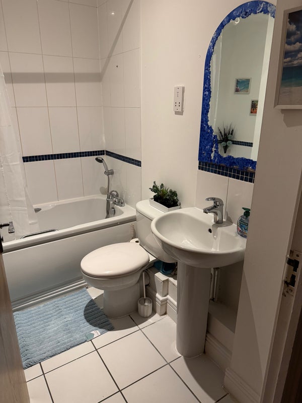 A bright and comfortable single bedroom with private en-suite bathroom (with bathtub) available in a clean, modern flat in Stratford.