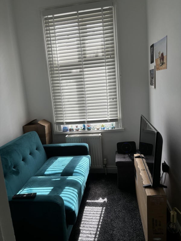 The flat comes partly furnished and includes a tiny but mighty sitting room with a comfy sofa where you can collapse after a long day of pretending to be productive. There’s also a shared kitchen and bathroom. On-street parking is available if you’re lucky or have good parking karma. Plus, we’re surrounded by loads of convenience shops and genuinely great neighbours. Like, the kind who nod and say “hello” without it being weird.