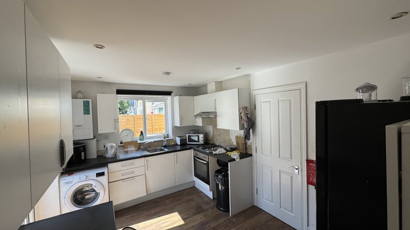 The communal area is clean and tidy which comprises with fridge and freezer, washing machine, microwave, and all kitchen appliances.