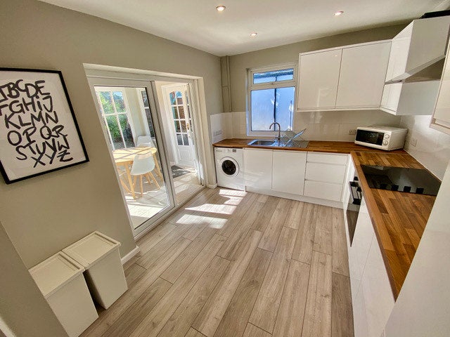 The house has a good sized garden, great for hanging out during the weekend or to break up any working from home days, along with a lovely chill-out/TV area for socialising after work whilst preparing food etc. There is also side access for those that ride bikes to bring their bikes into the garden.