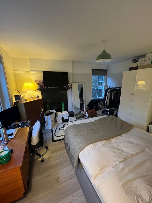 Spacious double bedroom, partly furnished with a wardrobe and a bed frame can be provided by the landlord if preferred.