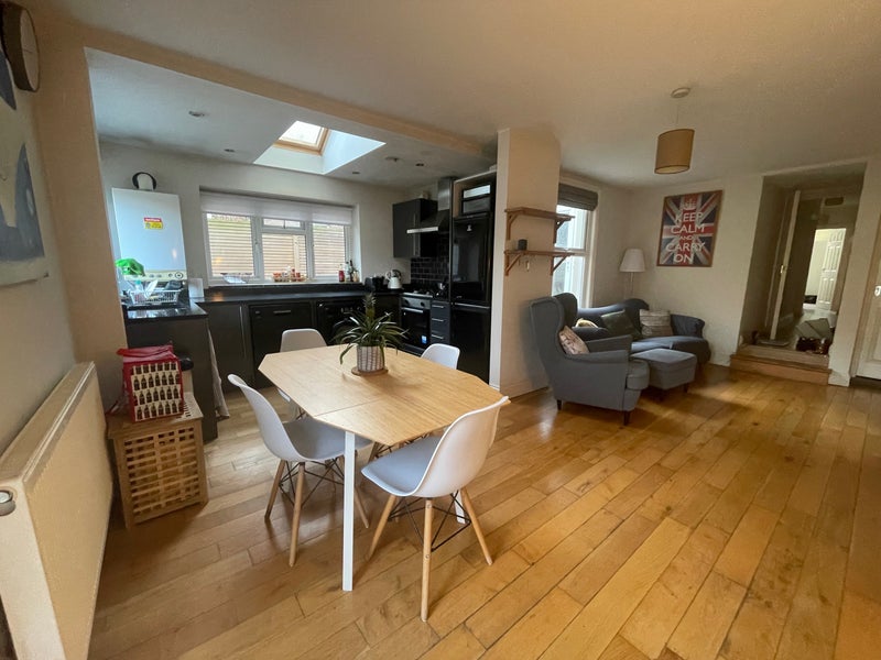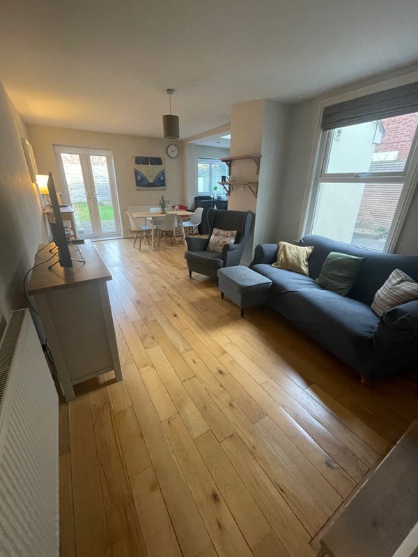 The house has plenty of shared living space to relax. The kitchen is spacious and has all the modern appliances and a dishwasher. The living room has a 2 comfy sofas and armchair and is equipped with Smart TV.