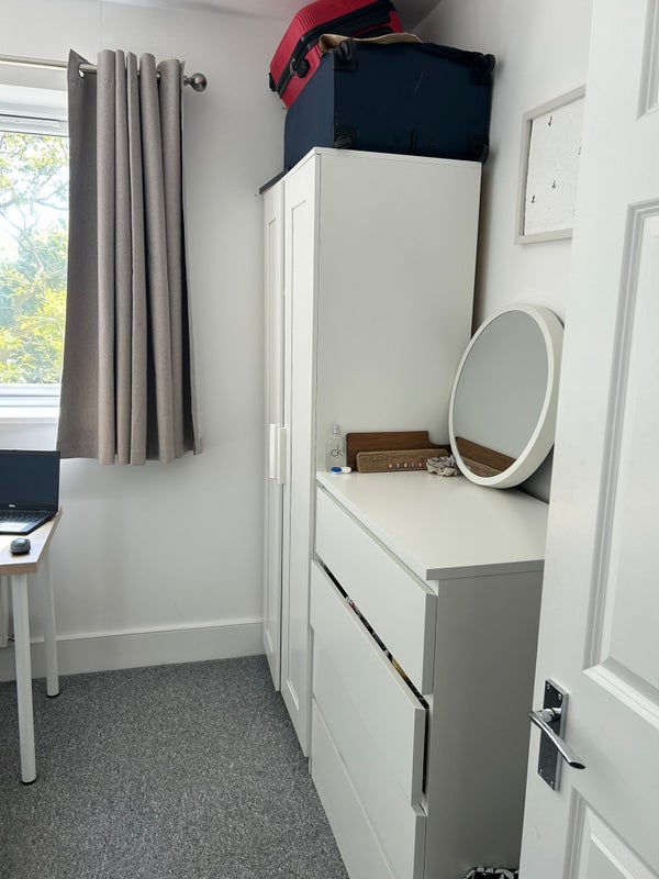 The room comes partially furnished with a bed, wardrobe, and chest of drawers, so it’s ready to move straight into.