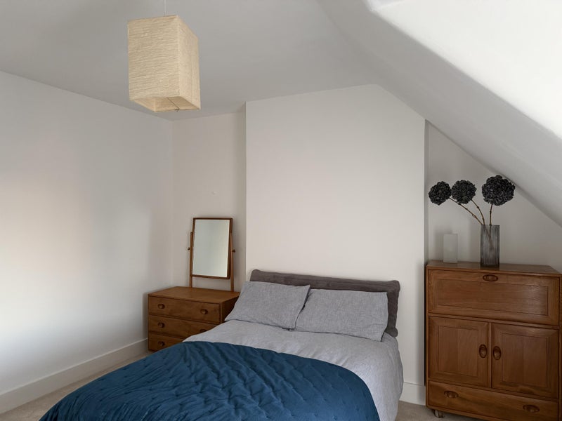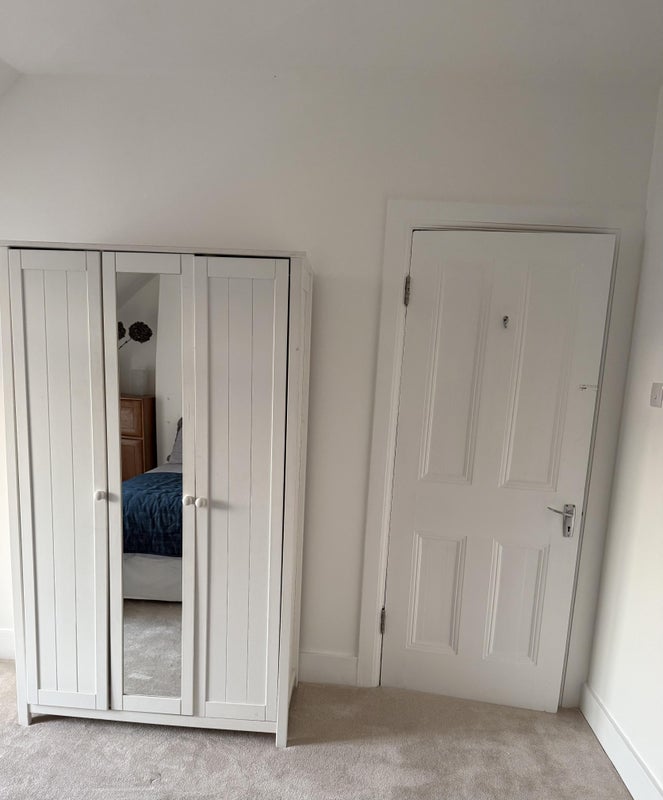 The furnished room includes a double bed, wardrobe, chest of drawers, bureau, table and chair. Freshly painted with new carpet. Shared kitchen, bathroom and laundry room. The modern kitchen is well equipped with a dishwasher and microwave. Laundry room includes washing machine and tumble dryer.
