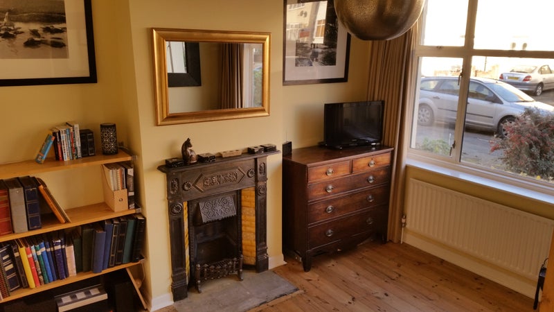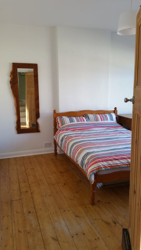 THE ROOM is a very large double room with lovely high ceilings. It's airy and light - currently with stripped floors (like the rest of the house). It has a double bed, a handmade desk, a chest of drawers, and a wardrobe you can get into it's so large! There's space for storage underneath the bed as well. It's bigger than it looks in the photos.
