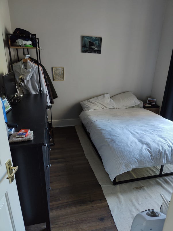 I have a beautiful bedroom with bay doors leading into the garden, it includes all bills. It comes with a double bed and a chest of drawers. There's on street parking.