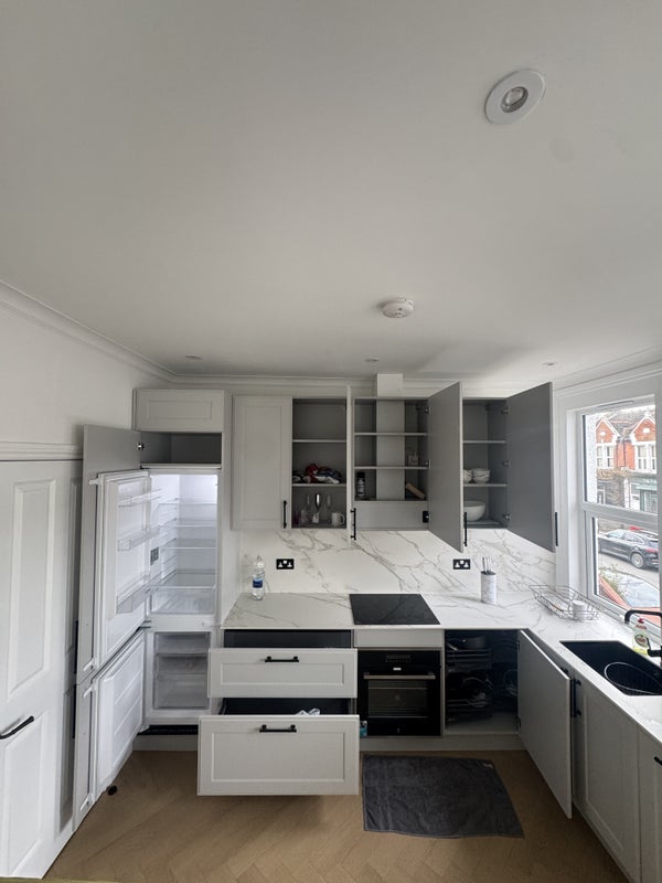 The flat offers a brand new modern kitchen with dishwasher, integrated oven and hob, large fridge freezer, and a washing machine that also works as a dryer.