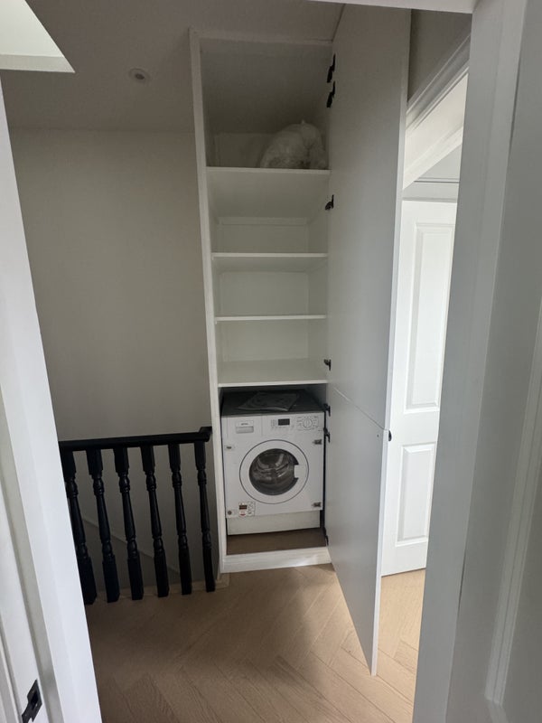 The flat offers a brand new modern kitchen with dishwasher, integrated oven and hob, large fridge freezer, and a washing machine that also works as a dryer.